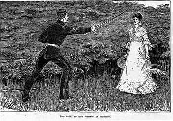 He remains incognito throughout, but her father has read of the brawl in the music hall in his paper, and mentions that Lord Fayne appeared ‘in a police court’ and was fined £5.00 (a hefty fine in 1894).