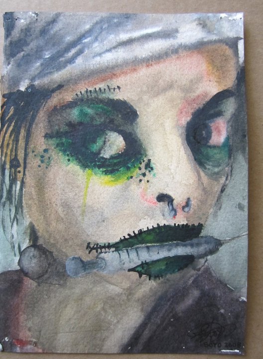 Sova's work is disturbing and raw; it has the ability to grab a hold of you and give you a swift kick in the stomach. When I look at a piece of art and have an instant visceral reaction to it, I know it's good. I know it's doing its job. In my mind, the main purpose of art is to make us ponder and emote and consider the world in a new light. I think Sova's art does that and I am as pleased as a puppy in a playground that she has agreed to work with me.