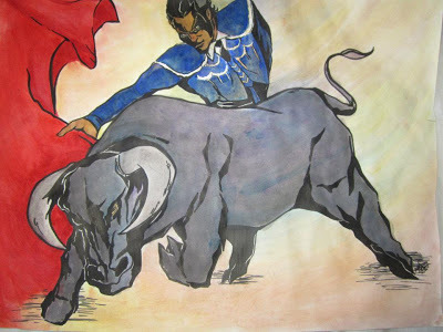 Photo Credit: Bryan LarsenTo me, the painting tells a story. It speaks of power mixed with humility. It speaks of gathering courage and strength before taking flight. It speaks of baring one's soul.If you don't remember the story of Icarus, it goes something like this: Icarus' father, Daedalus is a master craftsman. He designs two sets of wings made out of feathers and wax so that he and his son can fly away from the island of Crete. When he hands Icarus his set of wings, he warns him not to fly too high or the sun will melt the wax that holds his wings together. Icarus nods and smiles, but ultimately ignores the advice. He is too proud to skim across the sea. He rises up and up and eventually (surprise, surprise), the sun melts the wax and he plunges into the sea, where he drowns.
