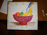 The fruit bowl should be up higher to make one continuous picture of the monkey, but you get the idea! I don't actually have a picture of the final product for the monkey project. Will update when I take one!And here's one more for the road. The dino on the penny-farthing is mine; the koi fish is by my brother:
