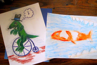 And here's one more for the road. The dino on the penny-farthing is mine; the koi fish is by my brother: