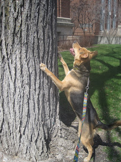 It's because I see it every day. It's because there are about five million of them in Minneapolis and five hundred of them around my block. They cross in front of my car when I'm driving and clamber up trees when I'm walking my dog. They are prolific. They are not special.But they are to my dog. He treats squirrels exactly how he treated monkeys when we lived in Panama: with fervent attention and unabashed excitement.
