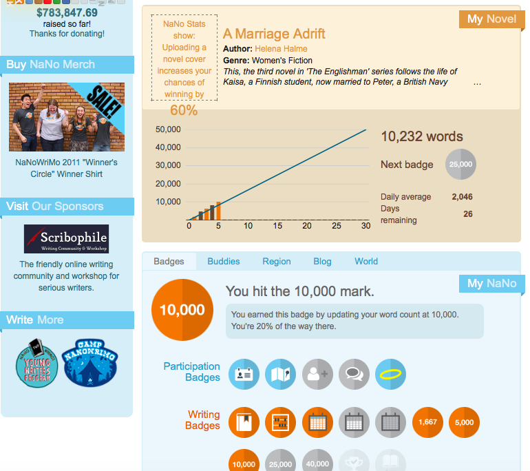 I've tried to do NaNoWriMo for years, and have never got further than about 10,000 words, so this year, having given up my day job to write full-time (eek!), I'll try to complete this challenge.
