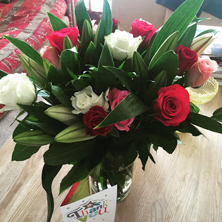 The lovely flowers and card with beautiful messages, which I was given by my colleagues yesterday.