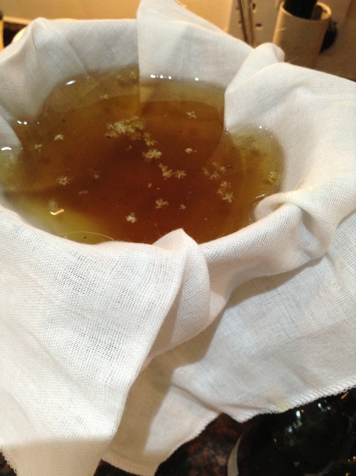 The next day, using funnel and a muslin cloth, distil the syrup into clean bottles. I put the bottles through the dishwasher and use them when they are hot out of the machine.