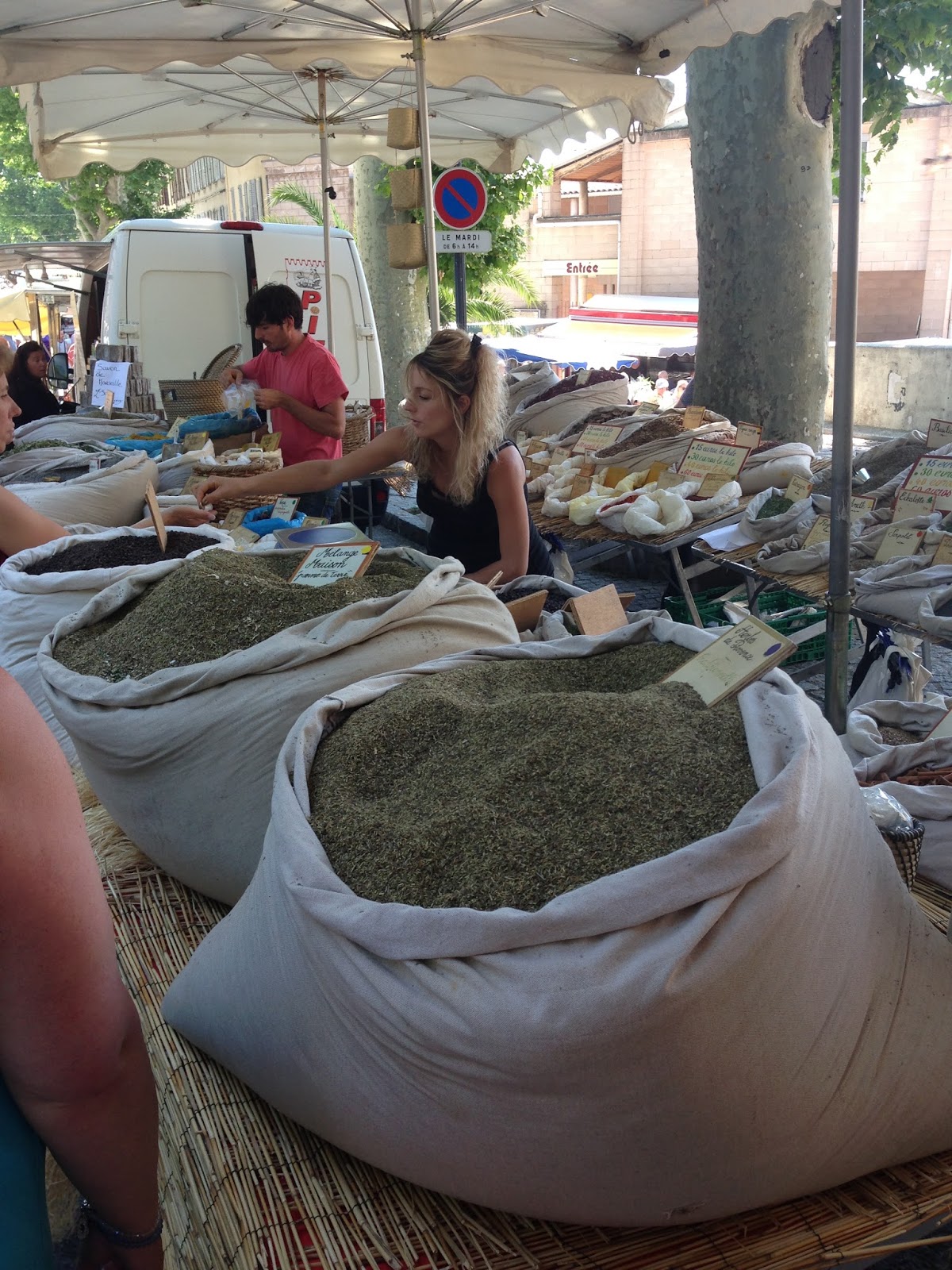 Oh boy, what a French treat: there were clothes, excellent leather goods, fantastic veg, saucisson, mountains of dried lavender and other herbs, and cheeses to die for. Plus anything else you might ever think of needing (including vegetable cutters…) The place was very busy with hordes and hordes of both locals and tourists.