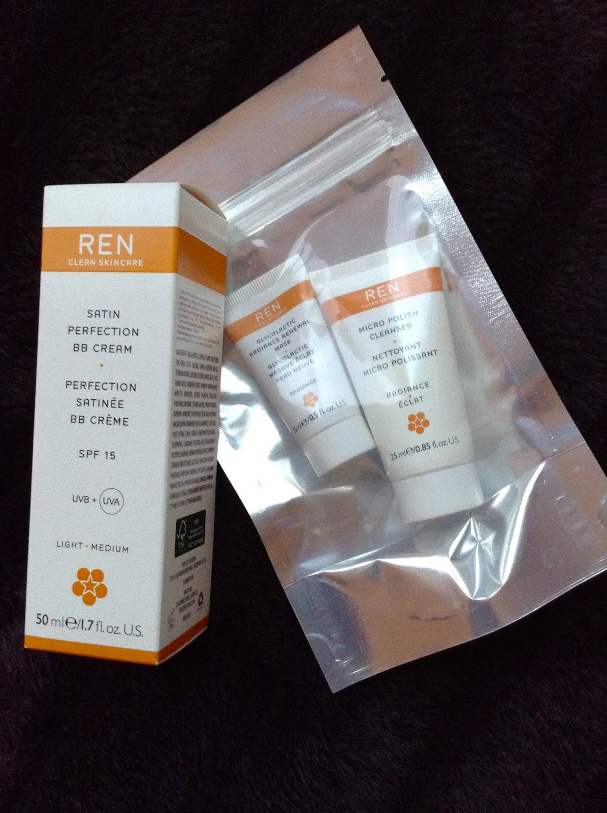 But today, while shopping with Daughter at John Lewis on Oxford Street, I had a cursory look at the REN counter and guess what, there it was, a whole row of BB creams. What's more there was an offer on - buy the cream and get a package of Radiance Renewal Cream and Micro Polish Cleanser for free!