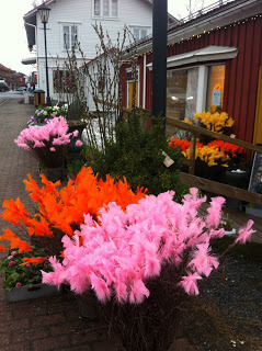 Because my roots are also partly from Sweden, where I lived as a child, I tend to mix into my Easter something from there too, such as these colourful feathers the Swedes attach to birch tree sprigs. I think you can buy these feathers in some florists in the UK, but luckily I've got some left over from last year.