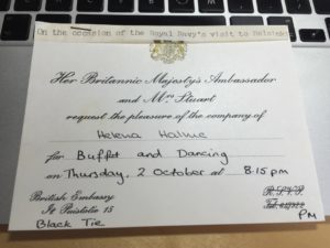 When I was gathering together documentation for the UK Home Office for my residency application (you guessed it, due to Brexit), I came across this, the original invitation I received from the British Embassy all those years ago. (If you’d read The English Heart you’ll know how pivotal this cocktail party at the Embassy in Helsinki was). It even has the Englishman’s address scrawled with my lipstick on the back because we couldn’t find a pen anywhere. This is another little detail I added to The English Heart because it was just too good to leave out.