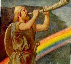 R - In Norse mythology, the Rainbow Bridge (Bifröst or Asbrú) is the burning bridge that stretches between Asgard (heaven) and Midgard (earth). The bridge was created by the Æsir so they could easily travel between their realm and the human world. Each day, the Æsir ride their horses across the Rainbow Bridge to Urd's Well, where they hold court.At the far end of the Bifröst sits the Norse god Heimdall. Heimdall stands guard against Giants who might use the bridge to enter Asgard. He also sta...