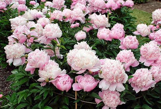 When I was a toddler, one year old, I think, mama had to leave home for a few hours, to go shopping. She took me to stay with her parents. In front of their house, in the small front yard, grew a huge peony bush. That morning, it was awash with flowers.