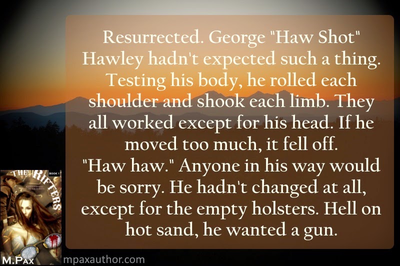 George “Haw Shot” Hawley is a ghost with a twist. I based him slightly on fact and slightly on fiction. One of the main characters in The Rifters was a real outlaw. So I did a lot of research and ran across this guy: C.B. Hawley (18??-1882) - An outlaw, Hawley confessed to stage robbery in 1882 near Globe, Arizona and was lynched. Index of American Outlaws