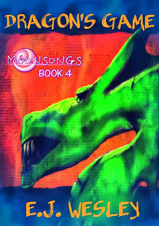Dragon's Game is approximately 14,000 words or 45 pages, and is the fourth volume of the Moonsongs Books, an ongoing series of New Adult, speculative / urban fantasy novelettes by author E.J. Wesley.