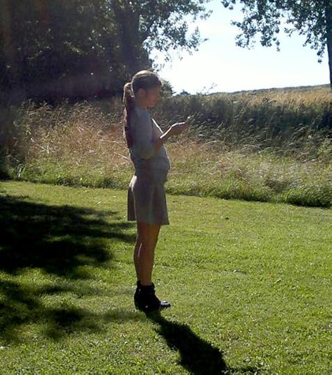 Jeg fylder mine arkiver med fotografier; steder, ansigter, hænder, ingenting må forsvinde. Du sender mig et billede du har taget. 'Jeg ligner et barn som jeg står der,' siger jeg. Du siger: 'sådan ser du ud, du er en pixie.'