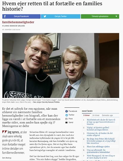 Og så er der de tilfælde, hvor såvel barn som forældre er kendte – som Sebastian Klein og hans forældre og den tidligere politiker Mimi Jakobsen, der i sidste uge ryddede forsiderne på formiddagsaviserne med sin biografi, hvor hun også fortalte om sin far, politikeren Erhard Jakobsens utroskab. Og i den mere kunstneriske afdeling kan nævnes norske Karl Ove Knausgård og Morten Sabroe.