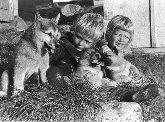 Der gik ikke lang tid, fra vi var kommet til Godhavn på Diskoøen, til min familie begyndte at indrette sig som de andre i byen. Vi skulle også have hundeslæde. Slædehundene stod lænket uden for huset i kæder, som var lige præcis så lange, at hundene ikke kunne nå hinanden. De var altid sultne. De var ikke kæledyr, indprentede min far os. Kort før vi kom til byen, var en ung mand faldet i søvn i en snedrive og blevet ædt. Og fangeren på den anden side af søen havde mistet en lille datter.