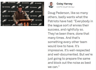 Yet, sports media this past week leading up to the Super Bowl has been filled with serious discussions as whether all this Patriots winning is good for us…not just football fans, but America in general. I must say, having followed some of these discussions, they’ve been remarkably thoughtful for football talk…and highly refreshing in contrast to past lead-ups to the Super Bowls featuring New England, which feverishly examined the nefarious means the Patriots used to make their way to the top. (For the record, I’ve already taken a cynical eye to address the mischaracterization of “the Cheatriots” in an earlier post. There I point out, among other things, that tsk…tsk…tsking a football team trying to get an edge on its opponent is high hilarity and utter hypocrisy in a nation built on stealing land from Indians, spying on both friend and foe, and delighting in popular cultural entertainments that mythologize deception.)
