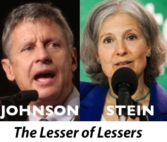 Rock and a hard place may apply to the position many voters say they find themselves in as the American Presidential election of 2016 makes its relentless midnight creep. But for the purposes of this post, I’m going to stick with the darker, direr Sophie’s choice because many of those in the greatest state of agita over their election options seem to be of the belief that they can successfully make a better deal for themselves…that they can offer the Nazi something else in exchange for the lives of both their children. What they think they can do is pull a button off little Eva’s sweater and a button off little Jan’s coat and proffer them both to the Nazi, who will accept the substitutions with a smile and let the whole family pass on without harm. In terms of the 2016 election, Green Party candidate Jill Stein and Libertarian Party candidate Gary Johnson are those buttons.