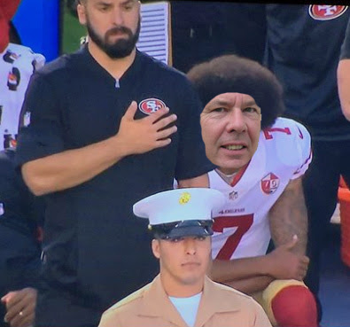 Though not a high profile figure like Kaepernick--an NFL quarterback who started in a Super Bowl--I’ve had more than a couple of go’s at public protest. Oddly, not counting editorials in student papers from high school to college to underground—my first overt public protest was in church. Later, in the midst of the Vietnam War, I engaged in precisely the protest that Kaepernick is doing right now…at ball games I would refuse to stand for "The National Anthem". Unlike Kaepernick, it could not be said that I was trying to start a national dialog with my protest because mine was so small and isolated that the only ones who might talk about it were those sitting immediately around me in the bleachers. (After 9/11, when shows of patriotism were close to becoming mandatory and excessive…and actually codified in the Patriot Act…I refused to have God Bless America forced upon me as a second national anthem and was confronted by a jingoist at Dodger Stadium who ordered me to take my hat off for it. I glared back at him, and with my hat firmly in place turned and walked away. So much for national dialog…)