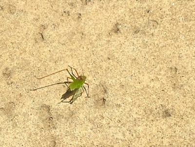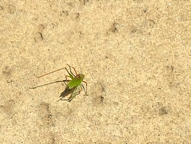 Such was the severity of my moral conflict that when I finally was able to resume the use of my pool, I couldn’t take my eyes off the bug pictured here, which was on its back, kicking its legs and fluttering its wings in a vain attempt to stop from drowning. I swam four laps by it until the old Catholic guilt rose up again inside me and I decided to save it. I had no idea what kind of bug it was. For all I knew it could be carrying the Zika virus, and I would be responsible for spreading the scourge through San Diego County. As I studied the bug’s struggle to get its breath back and clear its little lungs of chlorine and muriatic acid, I wondered what about it moved me to such a deed. It wasn’t just the shame over what I had done to the bees because surely if it had been a spider on its back gasping for life, it’s unlikely I would’ve noticed let alone acted. Could it have been its size or brilliant green color that inspired me? I don’t think so. I can imagine large, green bugs that I would’ve let drown without a second thought. Then when I looked at it lying on the concrete close enough to take pictures of it, I realized what it was…it looked almost human. As it had been in the water, it desperately kicked its legs and arms, as I imagine a human might do in a similar predicament.