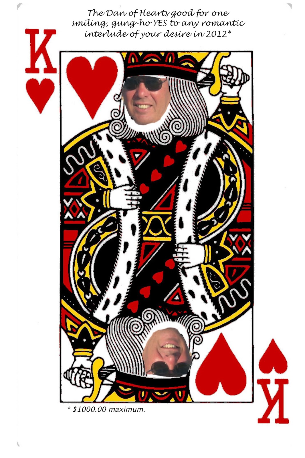 And she smiles and says, “You know, when I tell people about those cards, I say the best thing about them is that I’ve never had to play one. Dan is always so accommodating. So now you decide. Do you want me to keep saying such a nice thing about you, or do you want me to tell everybody that I had to cash in a card to get you to give me what I wanted for Valentine’s Day?”