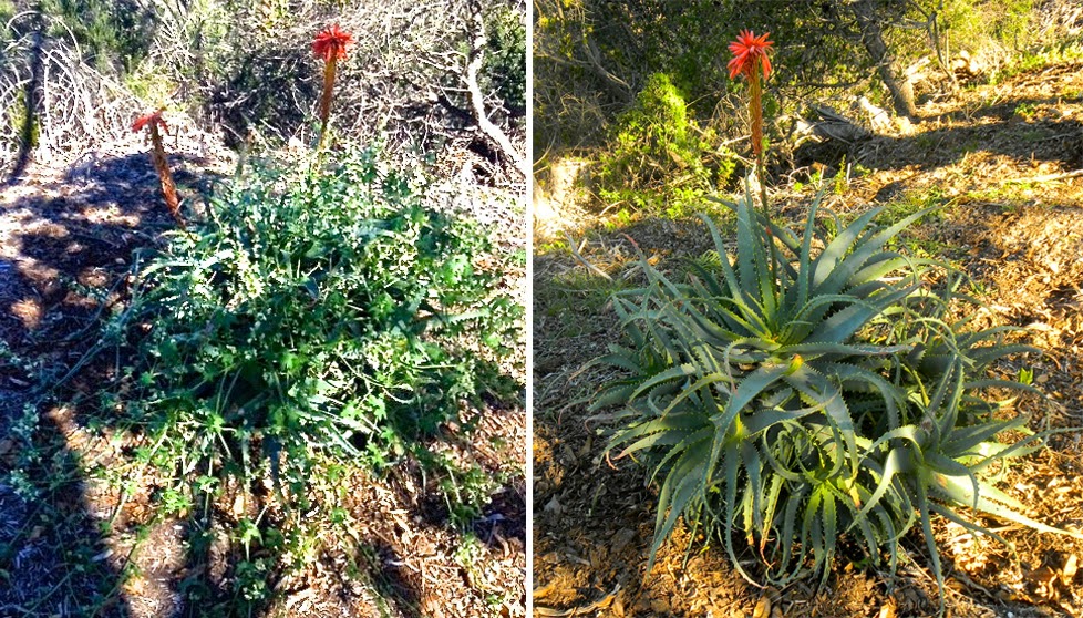 So I diligently set about my task and was making great progress when what to my wondering eyes should appear, but….?!?!!? Well, I didn't know what the hell. It was like something truly sci-fi…a little Invasion of the Body Snatchers crossed with Aliens 1, 2 & 3. Some gruesome growth…a most wicked weed…a most vile vine...had thoroughly consumed six of Lorna's prized plants. It was absolutely horrifying. I wanted to get James Cameron on the line and pitch him his next project--3-D! Get Sigourney Weaver back in her skivvies…Jackie Bisset in her wet white T (Control yourself, Danny Boy! Remember, we're talking Valentine's Day here.) It was hard to comprehend how effete, limp-wristed and flowered vines could overcome such massive, well-armed succulents. It was like nature's own version of rock, paper, scissors. I started hacking away, but my terror only grew as I realized the tentacles of vines not only spread over the landscape like snakes on a plane, but had formed a vast underground network of roots. Damn the hearts and flowers. It was time to kill…kill…kill…hack…chop…slaughter…terminate, exterminate, annihilate…whack…thwack!