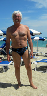 I love being on European beaches where the older folks are not cowed or bullied by a corrosive youth-obsessed culture into covering up. Bellies abound, drolly drooping over the bathing bottoms of men and women alike, who refuse to surrender the surf and sun to their more naturally well-toned young. I hear a quiet, albeit unconscious, declaration to Nobby’s love's body on those beaches—this is my body, I own it, I live in it, I love it, and I’m not going to drape it in another square foot of nylon or polyester or spandex to suit your aesthetic tastes. (Ick been mine prerogative!)