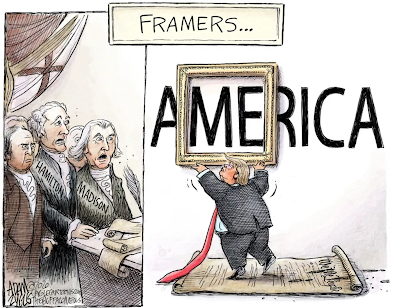 And that was a doubling down on a statement he made more than a year ago when he said, “Article II allows me to do whatever I want.”It’s not just that these are statements that would earn a high school American history student a failing grade on a test on presidential powers, it is that they are breathtaking and utterly un-American coming from the person elected to actually hold and exercise those powers. They are not a gaffes or misstatements or “jokes” as those who try to dismiss Trump’s authoritarian leanings and affections maintain. They reveal a fundamental hostility of the intent and purpose of the United States through its Constitution. They reveal base ignorance of the balance of powers and vile contempt for our federalist form of government. An entire political party has emerged to fully support and enable this incipient authoritarianism, which indicates that this deficiency in basic Constitutional law goes beyond one person and has taken on epidemic proportions. Allowing this to continue is tantamount to allowing airline pilots to fly without certification, doctors to operate without a license. It is a direct, deadly threat to our democracy, which requires an immediate Constitutional remedy. Resolved here in this post: No one should be allowed to hold elected federal office who cannot pass a bare minimum Constitutional IQ test...sample:1. The US system of government is best described asa. strongman ruleb. balance of powersc. laissez faire 2. The best description of the relationship between the three branches of government isa. survival of the fittestb. might makes rightc. checks and balances3. Article 1 of the Constitution gives the Congress the right toa. tax and spendb. declare war c. all of the above4. Article II of the Constitutiona. gives the president total control over the governmentb. limited control over the governmentc. shared control over the government5. The judiciary isa. equal to the legislative and executive branchesb. superior to the legislative, but inferior to the executivec. inferior to both the legislative and executive branches6. The 10th Amendment of the Constitutiona. allows the states powers not specifically prohibited elsewhere in the Constitutionb. enshrines the right of states to go their own way whenever they disagree with a federal lawc. gives any state the right to overrule the Bill of Rights for any of its citizensThere. You get the idea. I can’t do all the heavy lifting here. But someone should. Someone in Congress should rather immediately introduce legislation that creates such a test, even with all the other necessary emergency actions in the queue because of the pandemic. The legislation should require that anyone seeking federal office first have to take the test. A failing grade should be established, which could prevent anyone for running for such office until he or she passes the test. Barring that, anyone can still run regardless of a passing or failing grade, but in every circumstance all test grades should then become a matter of public record at the time a candidate officially declares for an office.The politics of this are easy. Voters want more accountability from their elected officials. Many would love to impose term limits; many would love to make them pay for their own health care; many would love to cut their pay. Making them all take this test would satisfy some of the electorate’s seething sense of outrage at Congress’s wanton irresponsibility.More importantly--and more to the point—this public servant qualification test would advance our essential sense of civic duty by forcing those running for office to demonstrate at least a rudimentary grasp of the Constitution they hope to serve…and proclaim to honor.