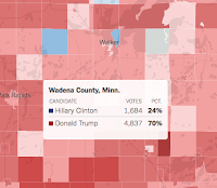 Although I’ve been a pretty normal consumer of World War II entertainment fare since my youth--from Battle Cry and Sands of Iwo Jima through A Bridge Too Far and Patton up to Saving Private Ryan and Inglorious Basterds--I’ve never been one of those World War II obsessives who spends hours in front of the History Channel tracking every battle or immersed in Greatest Generation™ literature. So that probably accounts for my shock when I took a flyer on a new Netflix series awkwardly titled The Greatest Events of World War II in Color and learned in episode one what a crucial role drugs played in the Third Reich. Most notable was the drug Pervitin:Pervitin was the early version of what we know today as crystal meth. And it was fitting that a German soldier would become addicted to the stuff: the drug, Der Spiegel notes, first became popular in Germany, brought to market by the then-Berlin-based drugmaker Temmler Werke. And almost immediately, the German army physiologist Otto Ranke realized its military value: not only could the methamphetamine compound keep fighters…alert on little sleep; it could also keep an entire military force feeling euphoric. Meth, Spiegel puts it, "was the ideal war drug."And it was, as such, put to wide use. The Wehrmacht, Germany's World War II army, ended up distributing millions of the Pervitin tablets to soldiers on the front (they called it "Panzerschokolade," or "tank chocolate"). The air force gave the tablets to its flyers (in this case, it was "pilot's chocolate" or "pilot's salt"). Hitler himself was given intravenous injections of methamphetamine by his personal physician, Theodor Morell. The pill, however, was the more common form of the drug. All told, between April and July of 1940, more than 35 million three-milligram doses of Pervitin were manufactured for the German army and air force.The Netflix documentary says that the Nazis mass consumption of tank chocolate was largely responsible for their stunning assault on France through the Ardennes Forest in 1940. Due to the drug, they were able to accomplish a two-week goal in three days because they didn’t need sleep and fought with a ferocity that would come to be their brutal calling card in the early years of the war. (I should note, the documentary makes clear that the Germans were also aided in the Battle of France by the arrogance and ignorance of the French high command…whose drug of choice must have been afternoon bottles of Bordeaux).This new addition to my personal databank got my mind thinking along two tracks…one trivial…the other possibly profound. The trivial is: Why hasn’t Hollywood addressed this Nazi drug habit in any of the many films made about the war? (If they have and I missed it, I’d appreciate a heads up from anyone out there with a title or two.) The more profound thought though is this: How many examples do we have from history of mass populations of people reacting in such a uniform way to common drug usage as to majorly alter a society’s behavior? As my mind toyed with the idea, I wondered if such a phenomenon could be at work in the USA today. So I went to two interactive maps on the Internet and began to play amateur sociologist. The first map (shown above) is from the CDC (Center for Disease Control and Prevention) tracking prescription drug use by county in the US in 2016. The second (shown below) is from the New York Times tracking US voting by county in the 2016 presidential election. I was looking for correlations between high opioid use (deep purple and red) and political preference (red for Republican/Trump; blue for Democrat/Clinton). What I’ve found in my survey--thus far restricted to just a dozen states—is rather startling in two regards:I have yet to find a deep purple high opioid dependency area that did not go for Trump…and by wide margins.Faint blue areas (Dem/Clinton) in deep red states show a considerable drop off in opioid use compared to the red areas around them.