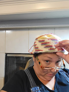 While I appreciated what my hair dresser was able to accomplish, it was still not cute, so I decided to make a hat...some hats. I made so many hats.