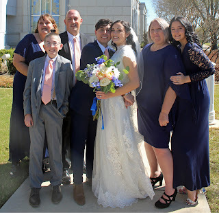 See Eenie and B-Mo wanted to get married in San Antonio. Thus the Thursday before the ceremony, the bride's peeps (that would be us) drove out to San Antonio where we stayed the night. Friday morning was spent primping and prepping, then the ceremony was performed that afternoon. We are Latter Day Saints or Mormons, so the marriage was performed in the temple there. Thanks to COVID, only five from each side could attend the actual ceremony while the rest waited outside.