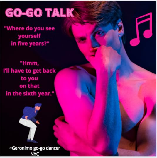 My character, Dimmy, endures many of these experiences as a go-go dancer in Whatever He Needs. Although he stands on a two-foot-high cube when he performs, he must constantly evade the physical attention of customers—inside and outside of the bar. He is judged harshly for being a go-go dancer, as if what he’s doing to pay the bills is shameful; even his lover, Liam, initially is ashamed by the prospect of introducing Dimmy to his very upscale family.