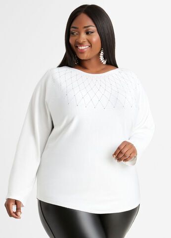 Plus Size Sexy Knitwear Stylish Dolman Sleeve Rhinestone Sweater Dolman Sleeve Sweater Dressy Sweaters Fashion