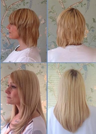 Hair Extensions For Short Hair Before And After Very Short Thick Hair Is Extended With A Full Head Of 12 Genuine European Hair Cabelo