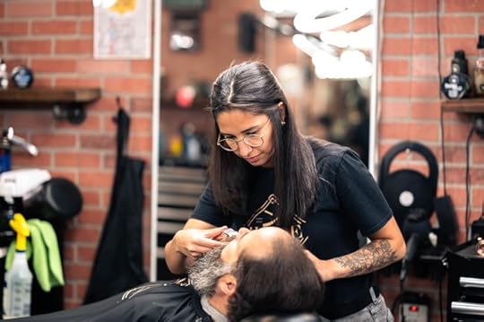 Pin On Female Barbers Hairdressers Cutting Mens Hair