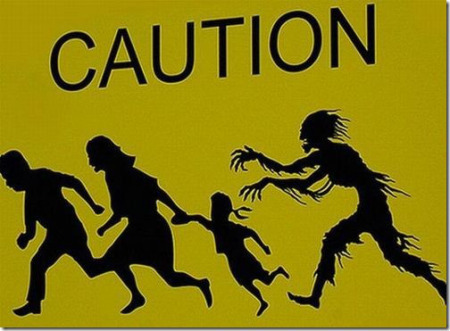 Blubber Island is inhabited by flesh eating zombies. Exercise all traditional zombie survival tactics such as; keeping a sharp ear, running away instead of fighting, and abandoning infected/slower traveling companions (see Image of father above). Occasionally, zombies will seem to appear without warning. Be on guard for zombies bursting out of the ground or falling out of the blue sky. Much like exploding heads, don’t think run. The following film clip is for educational purposes.