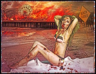 The undead moaning drowned out the crashing surf. Elis struggled to free himself. Another diseased hand rose by his head and clutched his face. Through the cold, rotten fingers, Elis watched zombies rise from the shore. The businessman’s laughter boomed in his ear. Elis’s crumbled hut became a giant fireball on the dark beach.