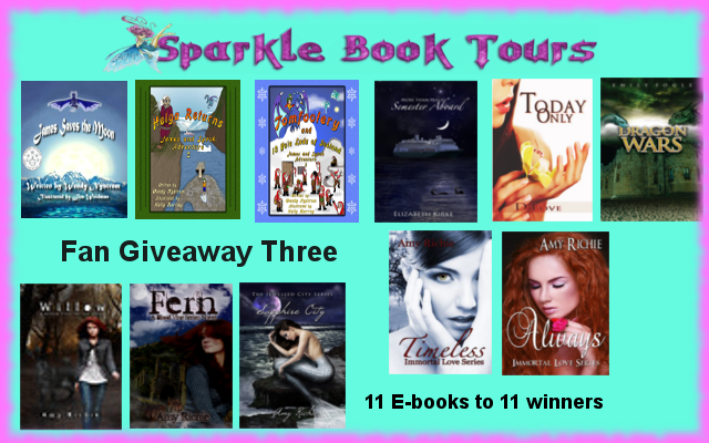 Head on over to Sparkle Book Tours and check out the various giveaway’s going on. They have two fan giveaway’s and three author giveaway’s.