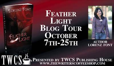 On October 10, 2013, Lorenz Font released Feather Light, her first erotica novel, with The Writer's Coffee Shop Publishing House. I was pleased to join her blog tour and contribute by giving my review of the book. Make sure to enter the Rafflecopter Giveaway at the end of this post. First, here is a summary of what Feather Light is all about:
