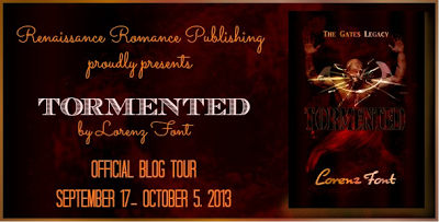 On September 17th, Renaissance Romance Publishing will be releasing Tormented, the sequel to Lorenz Font's Hunted: The Gates Legacy.
