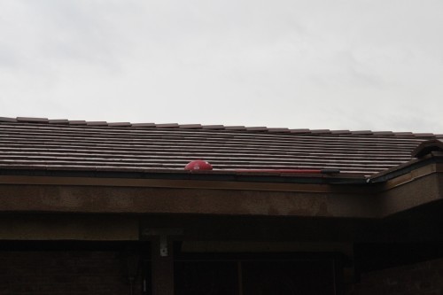 While I was out taking pictures I remembered the football my little football player threw up on the roof. He tried to get it down with the broom…you can see how well that worked. We keep forgetting about it (don’t ask if I’ve swept my kitchen floor in the last few days). Maybe the rain will bring it down for us.