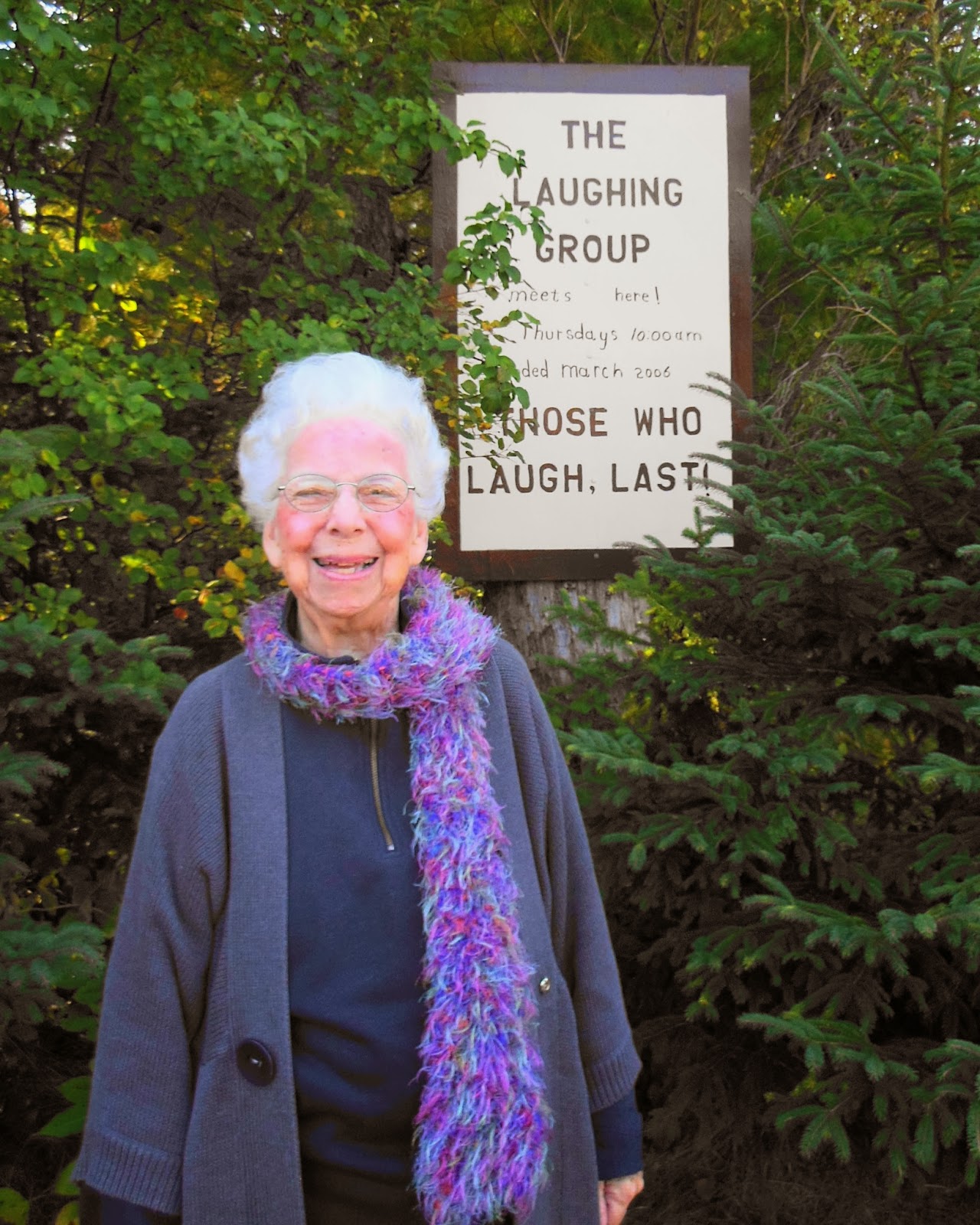 Since March of 2006, Jo can be found every Thursday morning at precisely 10 o'clock on the Main Street of Solon Springs across from the National Bank of Commerce. Here, with or without other participants, shadowed by the growing pines and beneath the "Laughing Group" sign, she begins to laugh, sometimes to roar. She laughs whether it rains, shines, or snows. It doesn't matter.