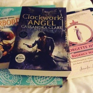 I have a very strict rule for myself that I made up when I wrote my very first book: No reading in the genre you’re writing in. This may seem crazy, but it started with a genuine desire to be unique in my story and voice. I didn’t want to be too heavily influenced by any other work in the midst of writing, and I was appalled at the idea of being accused of relying too heavily on someone else’s work. So, I gave up reading in the genre I was working in. This turned out to be easier than I imagined as I quickly realized that writing meant I had even less time for reading anyway. All the hours I used to spend curled up with a book were now spent hunched over the computer desk, telling myself stories late into the night. Well, this new project happens to be in a genre I don’t read. So this week, staring at that blank screen, I decided it was time I broke a few rules. I went into my library and pulled steampunk novels off the shelves that I’d always wanted to read. I went to the bookstore and bought the entire Infernal Devices series I’d always wanted to find time for because I enjoyed her writing style. I pulled up books on my kindle that I’d bought and never read. In the end I had a very ecclectic stack of books piled high on the bed beside my journal and planning album. This would be my world. Instead of writing for the next few days, I would pour myself into reading and soak up the work of talented authors with completely different styles and stories. From clockwork automatons to airships, from an India-inspired fantasy world to the streets of London, I explored it all.