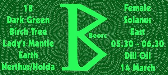 The tree for this rune is the birch tree. The birch tree is the tree of spring growth and purification. This tree shows farmers when it is time to plant their farms. It is also the tree of which Maypoles are made. It is said to bring good fortune and to drive away harmful influences.