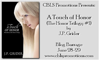 GIVEAWAY INFO: Prize is an autographed print copy of "A Touch of Honor (The Honor Trilogy #1)" from J.P. Grider. Contest is tour-wide and ends July 4. Must be 18 years of age or older to enter.
