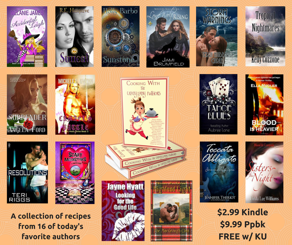 The Crazy Lady Authors aren't just cooking up plots in their books, they're also cooking up tasty vittles! Hey, we're 'crazy' about you, so we're 'dishing' our best recipes out in this awesome cookbook. It's the CLA's way of helping you serve up outstanding dinners in between reading any one of our published works. We know how easy it is to get lost in the pages. Before you know it, the hours have flown by and it's time for dinner. The hubby is hollering, the kids are complaining, and even the dog wants treats. We figure it's all our fault so why not help you maintain peace and harmony in your home by providing this amazing book of easy recipes to keep your clan well-fed? We do, however, stop short of coming to your house to cook it all up for you. We're writing our next novels, after all! Don't be greedy. Bon appetit!