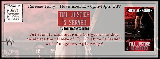 Join Jerrie and her guest hosts at the Release Party for Till Justice Is ServedNovember 10th from 6pm-10pm CST