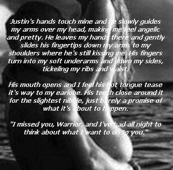 Finally his lips crash into mine and the taste of his mouth ignites my passion. The strength of his impressive lips sends chills down my arms as I move my legs from under him, opening them for him to fall comfortably in between.