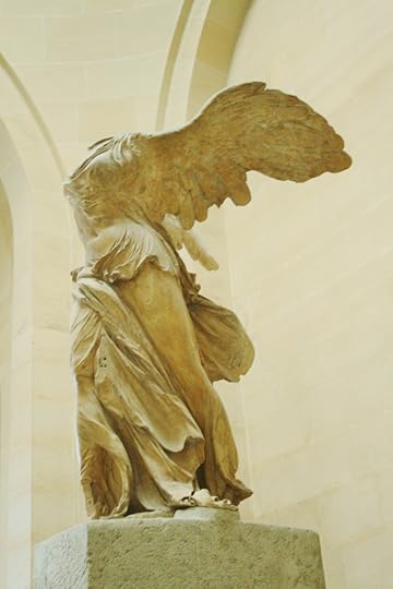 the NIKE OF SAMOTHRACEThe 9 ft. tall Hellenistic statue ‘WINGED VICTORY’, known formally as the ‘NIKE OF SAMOTHRACE’, holds pride of place at the top of the Louvre’s Daru staircase. It was excavated in 1863 with only one wing, minus its head and arms, but in 1950 a few fragments of Nike’s right hand were discovered. The second wing was cast from the original created in the second century B.C. The missing body parts have never been found, but there’s a chance they were preserved and hidden away, yet to be discovered. In its original state it would have been painted in garish colors… proving that old-age can actually be improved with the ravages of time.Like Bridget Jones, she’s perfect… just the way she is.