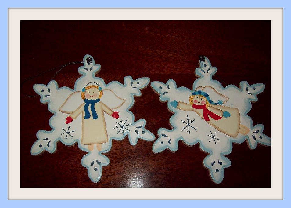 2. TWO wooden angel snowflake ornaments. These are also made out of wood and hand painted with the little angels. Aren’t they so sweet?!